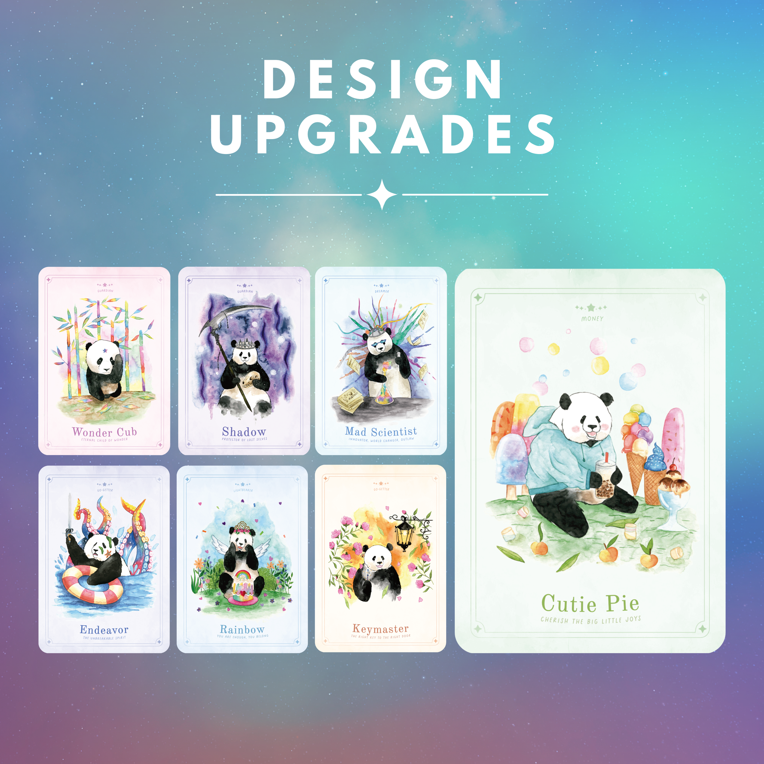 (Edit: I asked for feedback previously and excitedly typed "let me know what you think" because I was excited to share the changes I've made - I wasn't asking for input on if should go for the changes or not. I should mention that I will *not* be altering the new core designs of the cards like the border, the font, and the colored background - as mentioned above, this is what my creative vision is for League of Pandas. This new version reflects the authentic becoming of League of Pandas and is here to stay.)