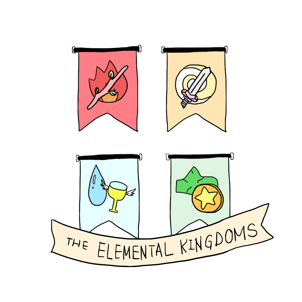 Note: My perspective and understanding have slightly shifted since the video was published. In the video, I described the Four Kingdoms as "clans", which is basically the same idea but I decided to switch from "clans" to "kingdoms" because...well, it sounds cooler and truer to the arhceyptal scopes of tarot elements. :) Also, I described the Wands as highly idealistic, a personality trait that I eventually attributed to the Swords after having an epiphany with the Wands.